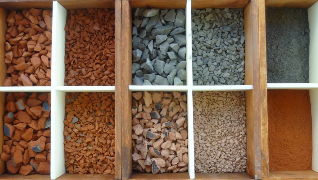 屋根瓦リフォーム時に発生した粘土瓦を、破砕・加工して再利用した天然素材です。